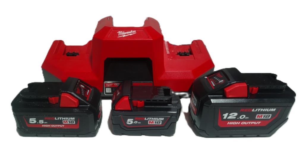 - 3 akkua (5,0 Ah, 5,5 Ah ja 12,0 Ah)